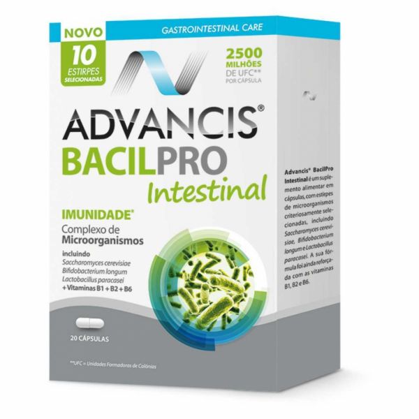 Advancis® Bacilpro Intestinal é um suplemento alimentar em cápsulas, com estirpes de microrganismos criteriosamente selecionadas.