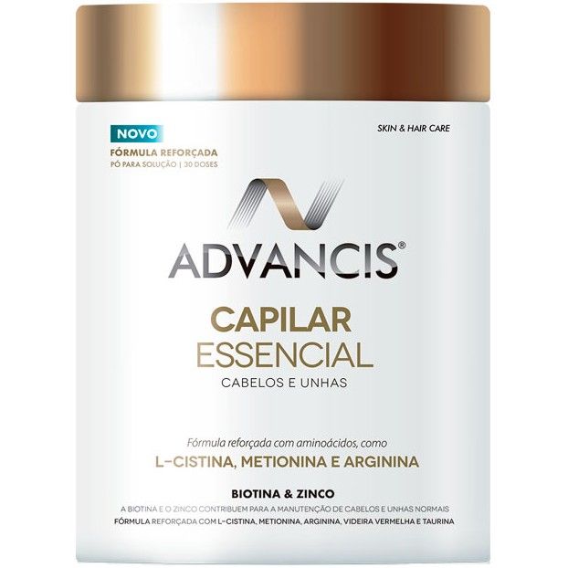 Advancis® Capilar Essencial é um suplemento alimentar em pó, com uma fórmula completa e equilibrada. Contém proteína do soro do leite, utilizada pelo relevante teor em aminoácidos.
