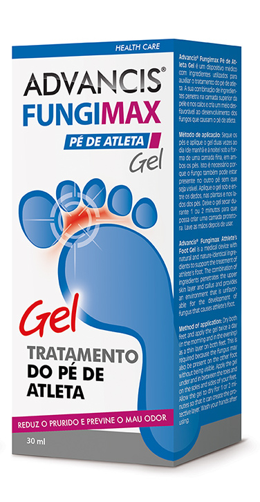 Advancis® Fungimax Pé de Atleta apresenta componentes únicos e inovadores que funcionam em conjunto para tratar e prevenir o desenvolvimento de fungos. A fórmula de Advancis® Fungimax Pé de Atleta, em gel ou em spray, forma uma barreira física na camada superior da pele, tornando-a mais hidratada e protegida do desenvolvimento de fungos.