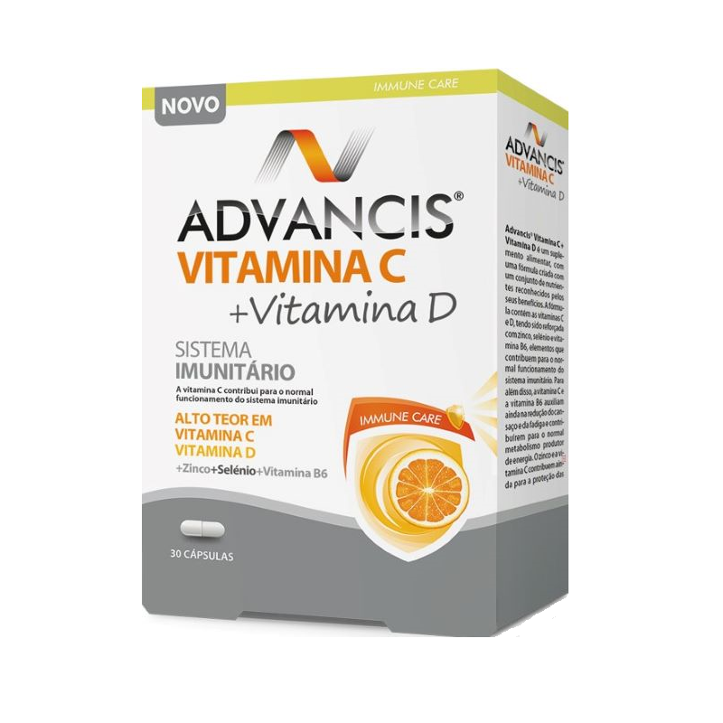 Advancis® Vitamina C + Vitamina D é um suplemento alimentar com uma fórmula criada com um conjunto de nutrientes reconhecidos pelos seus benefícios. A fórmula contém as Vitaminas C e D, tendo sido reforçada com Zinco, Selénio e Vitamina B6, elementos que contribuem para o normal funcionamento do sistema imunitário.