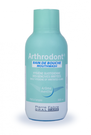 Arthrodont é um colutório pós-escovagem, à base de ácido glicirretínico a 0,1%, ingrediente reconhecido pelas suas propriedades calmantes. Combinado com uma escovagem adequada, atua nas gengivas e nos espaços interdentários em casos de: gengivas irritadas*, utilização de aparelho ortodôntico ou prótese dentárias.* irritações de origem não patológica.
