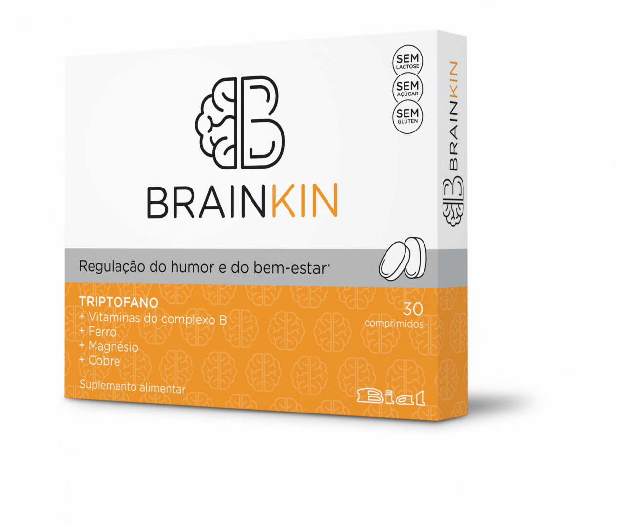 Brainkin tem como principal constituinte o triptofano, uma aminoácido essencial para produzir serotonina, comumente chamada de "hormona da felicidade".