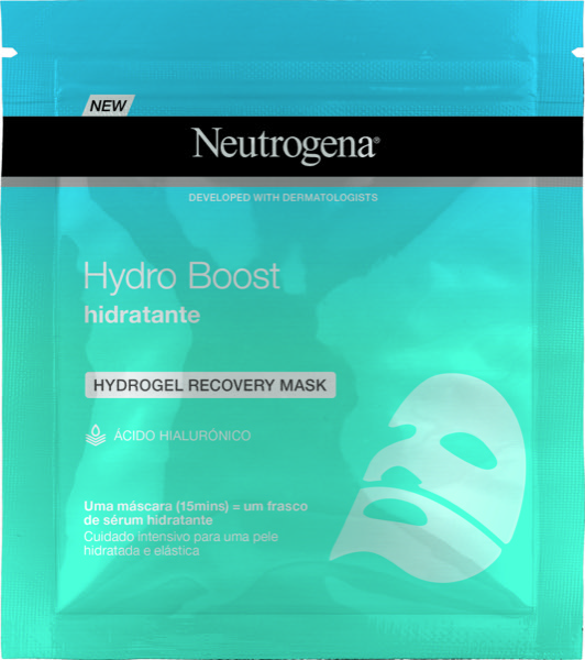 Hydro Boost Hydrogel Recovery Mask Hidratante da Neutrogena® é uma máscara facial de nova geração, 100% constituída por uma fórmula em hidrogel hidratante, enriquecida com Ácido Hialurónico.