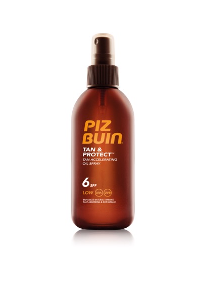 O Óleo Spray Tan & Protect® Intensificador de Bronzeado com Illumitone™, ajuda a acelerar o processo natural do bronzeado da sua pele*. O spray proporciona uma proteção eficaz contra os raios UVA/UVB. A fórmula de absorção imediata hidrata a sua pele, ajuda a prevenir a descamação e contribui para um bronzeado mais duradouro. Não gorduroso e não pegajoso. Resistente à transpiração e à água. *Testes in vitro.