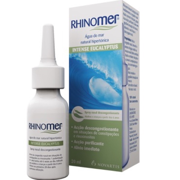 Rhinomer Intense Eucalyptus é um spray nasal sem conservantes contendo água do mar natural hipertónica combinada com óleo essencial de eucalipto e extrato de hortelã. A solução não diluída retém a riqueza de todos os minerais importantes e microelementos contidos na água do mar, como cálcio, magnésio, ferro e zinco. Rhinomer Intense Eucalyptus é um descongestionante nasal natural intenso que proporciona um alívio eficaz e natural da congestão nasal, devido a contipações e rinossinusites; ajuda a prevenir o aparecimento de novas infeções devido à ação purificadora que limpa as passagens nasais e porque ajuda a eliminar as bactérias e vírus presos no muco do nariz; proporciona uma sensação imediata de alívio e frescura; tem um efeito anti-secura, hidratando as cavidades nasais.