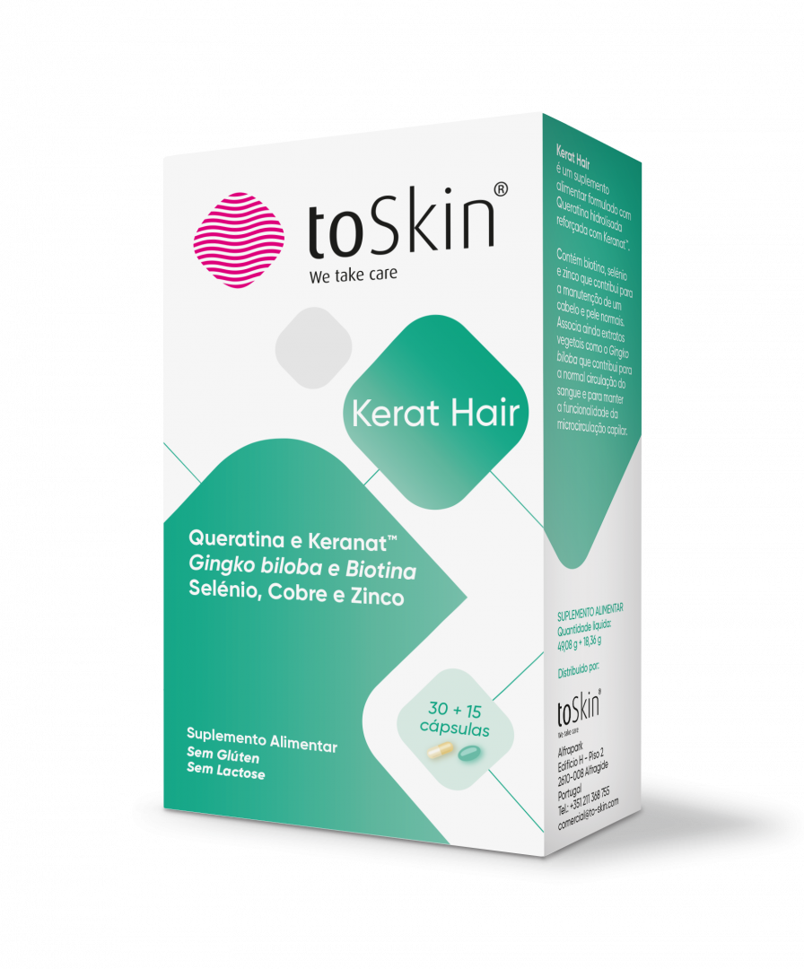 KERAT HAIR Combate a queda associada a deficiências nutricionais e hormonais, dá alimento ao cabelo e promove o seu crescimento a partir do bolbo capilar
