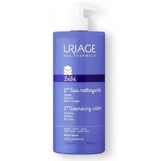 1ère Eau limpa e elimina todas as impurezas e sujidades do rosto, corpo ou nádegas do bebé sem ser necessário enxaguamento. Concentrado em Água Termal Uriage calmante, 1ère Eau é enriquecida com substâncias activas hidratantes e suavizantes, e possui um perfume delicado.