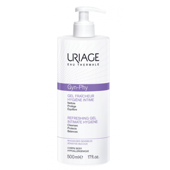 Uriage GYN-PHY Gel Refrescante pH5,5 é um cuidado de higiene indicado para as mucosas íntimas irritadas ou como cuidado preventivo de irritações vaginais ou infeções urinárias. Pode ser utilizado por crianças a partir dos 4 anos, adolescentes e mulheres. Com textura fresca, agradável e de fácil enxaguamento, limpa com suavidade, sem secar nem irritar a mucosa vaginal. O pH fisiológico presente permite respeitar e manter o equilíbrio da flora íntima, oferecendo uma sensação de bem-estar. Sem parabenos, sem corantes e sem sabão. Testado sob controlo ginecológico. Hipoalergénico.