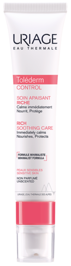 Com uma fórmula minimalista, Toléderm CONTROL Cuidado Apaziguante Rico é um creme suave que apazigua de imediato, nutre, protege e oferece conforto duradouro à pele sensível, intolerante, hiper reativa e alérgica. Com uma fórmula com 3 ingredientes ativos de origem natural , este cuidado reforça a barreira cutânea e aumenta o seu limite de tolerância para ajudar a controlar as sensações de repuxar, irritação, desconforto e/ou calor.
